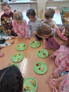 Następnie każde dziecko otrzymało małe kawałki owoców. Po skosztowaniu każde dziecko musiało ocenić smak.