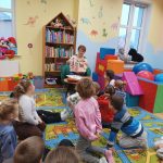 Dzieci z oddziału 0a odwiedziły Bibliotekę publiczną, gdzie miały okazję obejrzeć teatrzyk Kamishibai. Z zainteresowaniem słuchały baśni i legend. Z pewnością wizyta w bibliotece rozbudzi w dzieciach jeszcze większe zainteresowanie do książek. <<galeria zdjęć>>