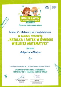 Klasa 🅘🅘🅘 🅐 realizuje kolejne moduły Ogólnopolskiego Projektu „Natalka i Antek w świecie wielkiej matematyki”.