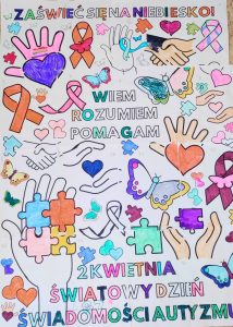 W naszej szkole obchodziliśmy Światowy Dzień Świadomości Autyzmu. Ubraliśmy się na niebiesko, aby okazać solidarność z osobami w spektrum autyzmu.